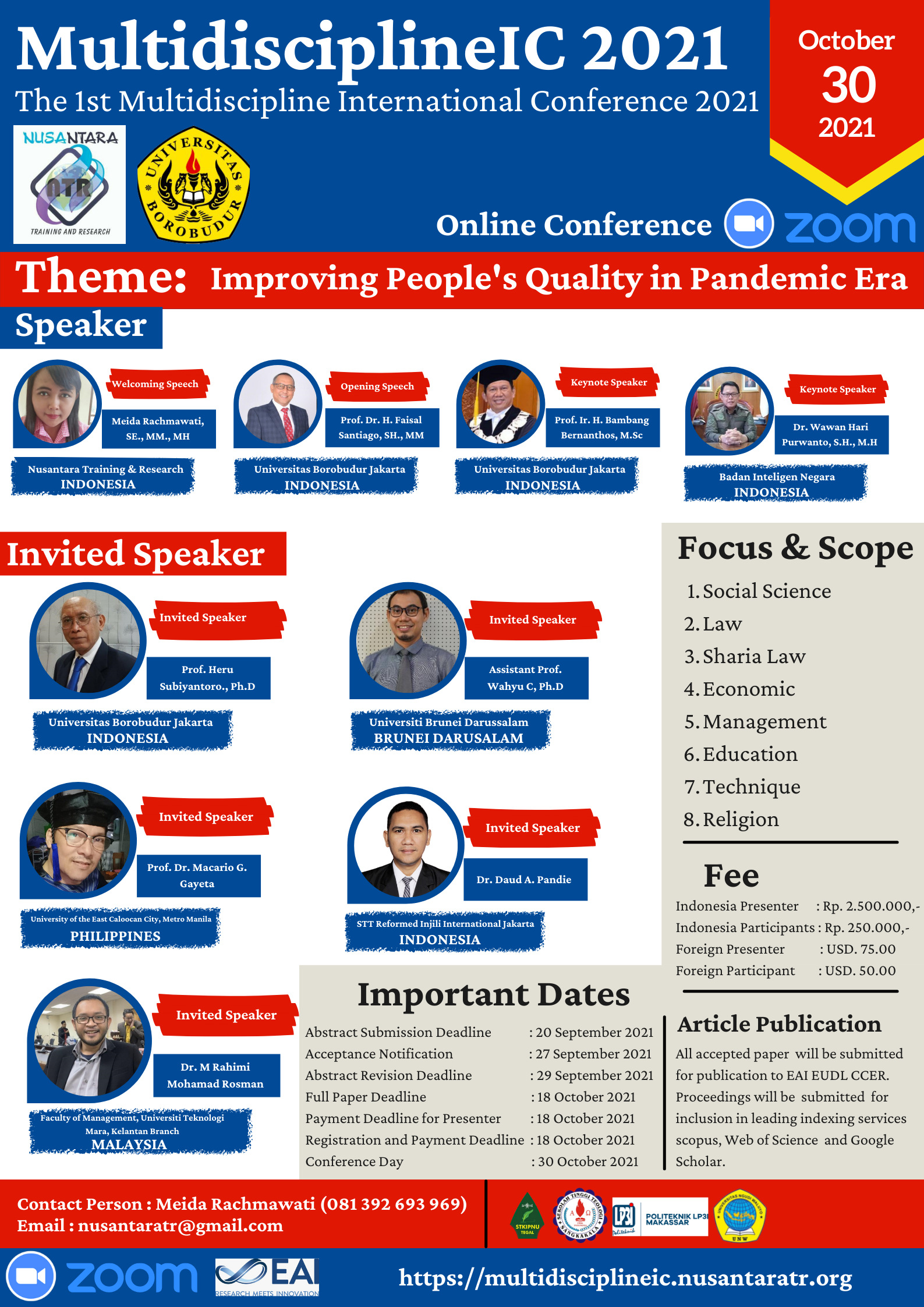 As an archipelago with vast territory, Indonesia presents unique logistical challenges for hosting large-scale international events. To accommodate participants both from overseas and across Indonesia, the conference will take advantage of the online format, ensuring inclusivity and ease of access for all attendees. By leveraging the Zoom platform, we aim to create a seamless virtual environment for knowledge exchange and collaboration, providing a flexible and accessible experience for participants from around the world